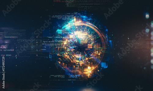 Wall mural abstract background. 3d atom model. elegant glowing circle. light ring. sparking particle. space tun