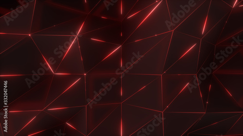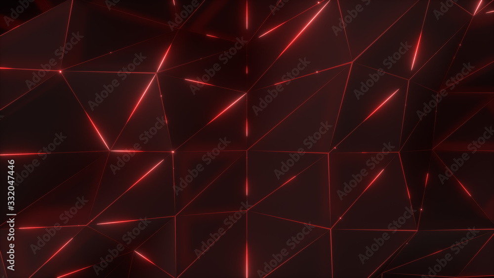 Wall mural abstract background. low-poly dark waving surface with glowing red light. 3d render