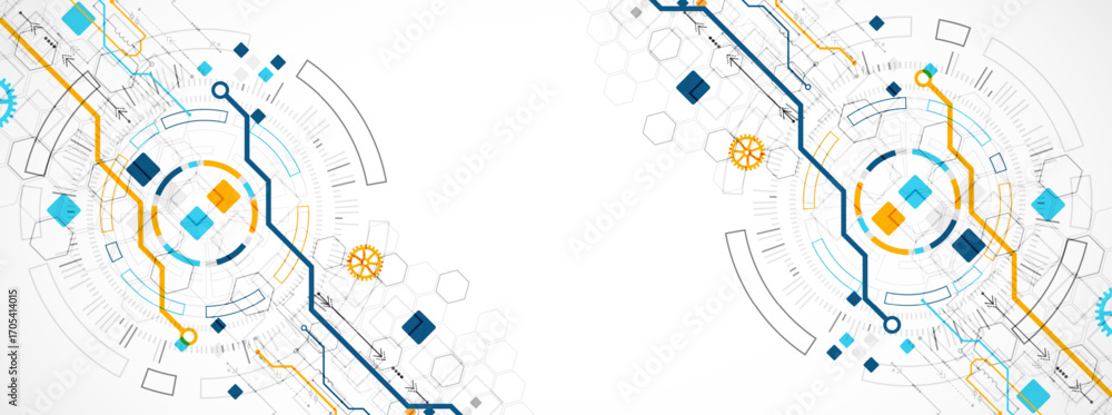 Wall mural : Abstract background - scientific and technological concept with the use of technical elements formed