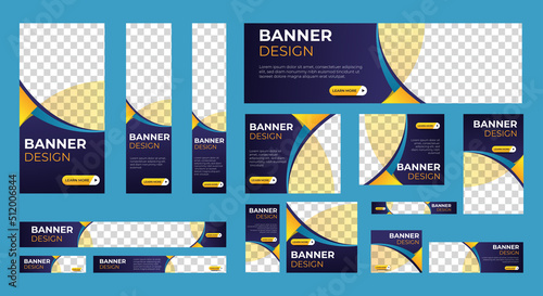 Wall mural abstract banner design web template set, horizontal header web banner. modern gradient blue cover he