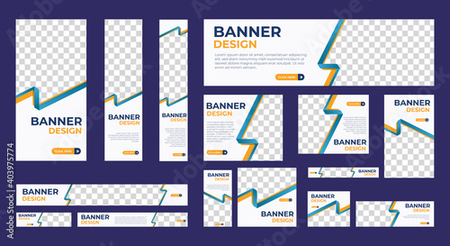 Wall mural abstract banner design web template set, horizontal header web banner. modern gradient blue cover he