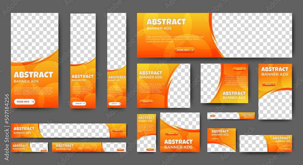 Abstract banner design web template set, horizontal header web banner - modern gradient orange cover Wall mural