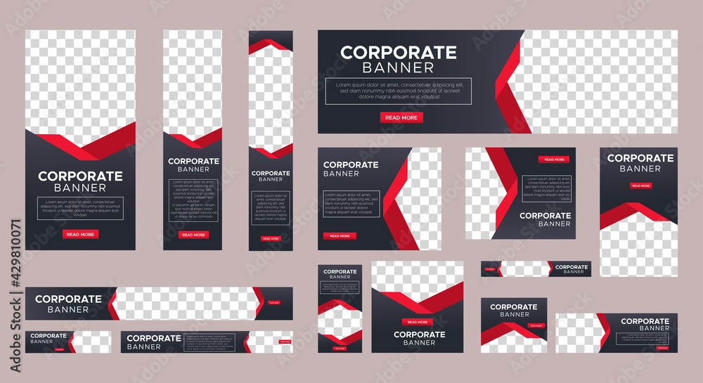 Wall mural abstract banner design web template set, horizontal header web banner. modern gradient red cover hea - Wall murals Wall mural abstract banner design web template set, horizontal header web banner. modern gradient red cover hea - Wall murals