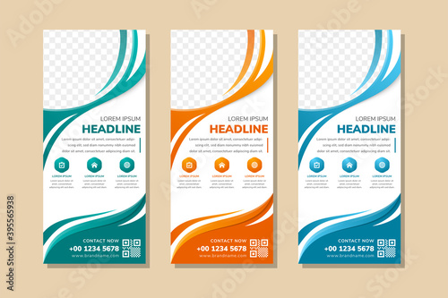 Wall mural abstract banner template design with quarter circle space for photo. vertical layout use modern wave