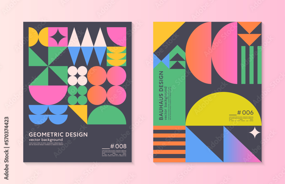 The watermark will not be included on Wall mural.: Abstract bauhaus geometric pattern backgrounds with copy space for text - trendy minimalist geometric