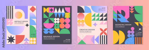 The watermark will not be included on Wall mural.: Abstract bauhaus geometric pattern backgrounds with copy space for text - trendy minimalist geometric
