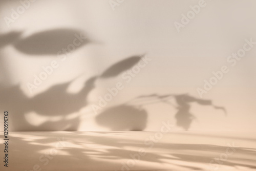 Wall mural abstract beige color gradient studio background for product presentation. empty room with shadows of - Wall murals Wall mural abstract beige color gradient studio background for product presentation. empty room with shadows of - Wall murals