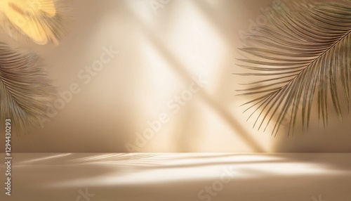 The watermark will not be included on Wall mural.: Abstract beige studio background for product presentation empty room with shadows of window and flow
