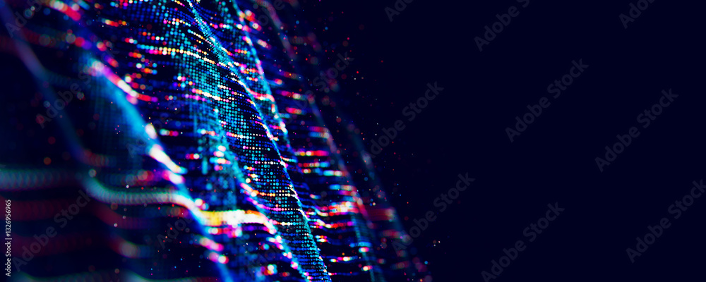 Wall mural abstract big data digital stream waves. information flow concept. llm learning process, ai technolog - Wall murals Wall mural abstract big data digital stream waves. information flow concept. llm learning process, ai technolog - Wall murals