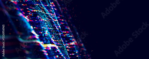 Wall mural abstract big data digital stream waves. information flow concept. llm learning process, ai technolog