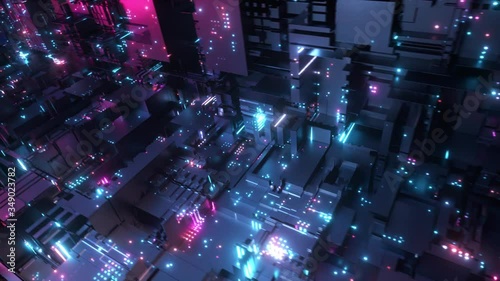 The watermark will not be included on Wall mural.: Abstract big data transfer - binary processing is handled by the computer motherboard - futuristic pro