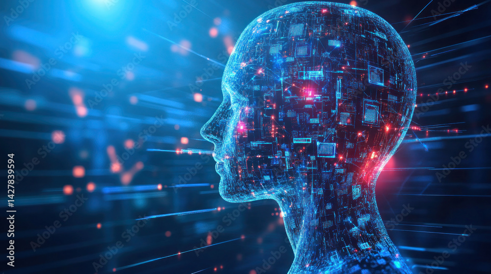 The watermark will not be included on Wall mural.: Abstract binary code streams through a digital tunnel, illuminating the global network of informatio