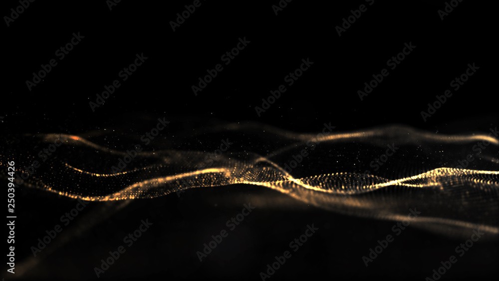 Abstract black and gold color digital particles wave with bokeh backgroundWall mural