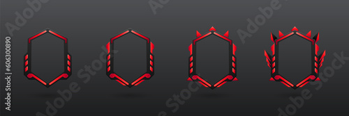 The watermark will not be included on Wall mural.: Abstract black and red game avatar banner border frames set for game ui design