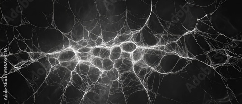 Wall mural : Abstract black and white background with a network of glowing lines - ideal for scientific or technol