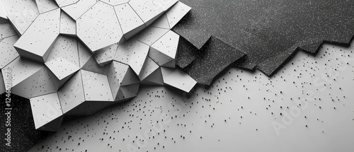 Abstract black and white background with crystalline structures and textured particles for design anWall mural