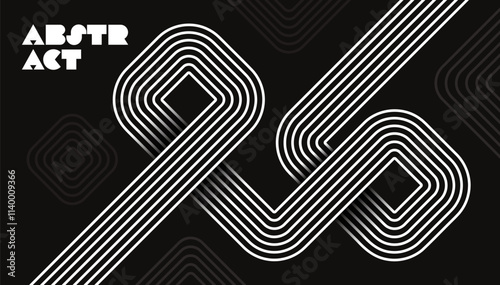 Wall mural : Abstract black and white background with geometric line art featuring interconnected curves and shap