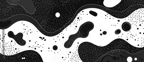 Wall mural : Abstract black and white background with organic shapes and textures in a dynamic wave pattern for c