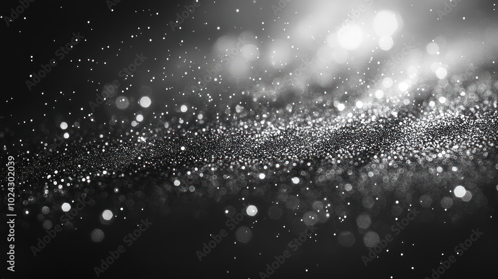Wall mural : Abstract black and white background with shimmering particles and bokeh lights -