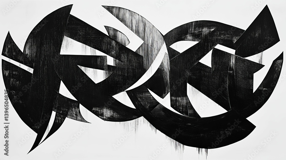 Wall mural abstract black and white graphic design with intersecting circular shapes. - Wall murals Wall mural abstract black and white graphic design with intersecting circular shapes. - Wall murals