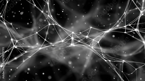 Wall mural abstract black and white image featuring interconnected lines and dots, creating a network-like patt