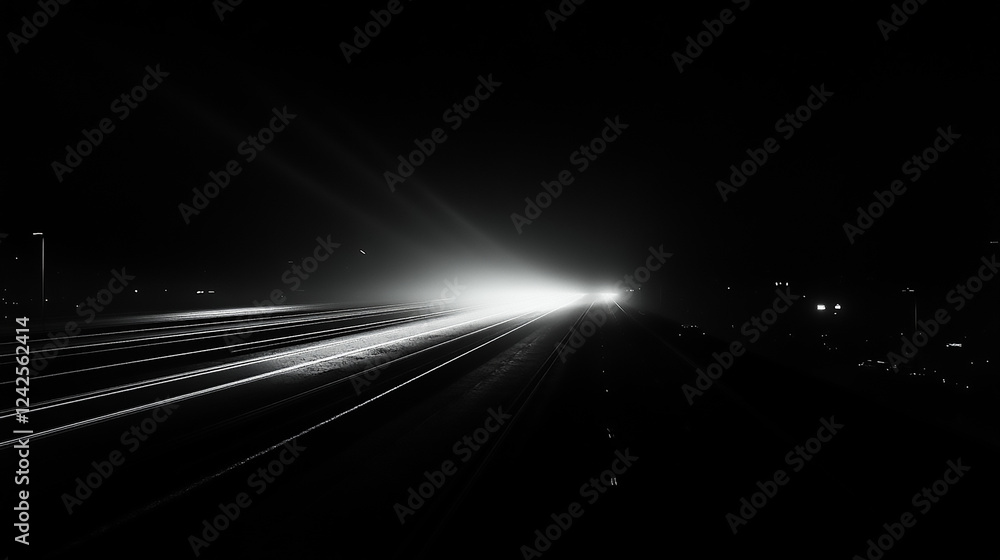 The watermark will not be included on Wall mural.: Abstract black and white wavy landscape with light source abstract light waves create a serene and m