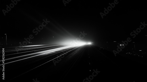 Wall mural : Abstract black and white wavy landscape with light source abstract light waves create a serene and m