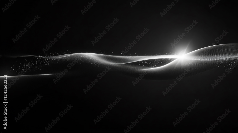 The watermark will not be included on Wall mural.: Abstract black and white wavy landscape with light source abstract light waves create a serene and m