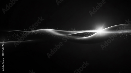 Wall mural abstract black and white wavy landscape with light source abstract light waves create a serene and m