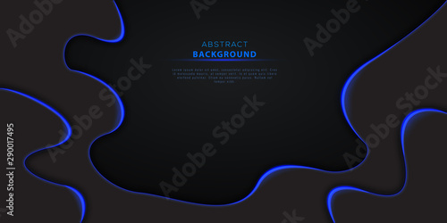 Wall mural abstract black background textured with 3d dynamic shape layers and blue neon lights. futuristic mod