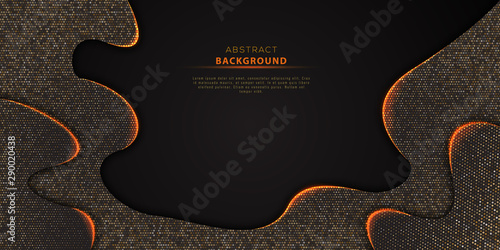 Wall mural abstract black background textured with golden glittering dots pattern and text. modern design eleme