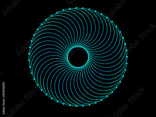 Wall mural : Abstract black background with circle lines pattern in vibrant colors of blue-green light gradient -