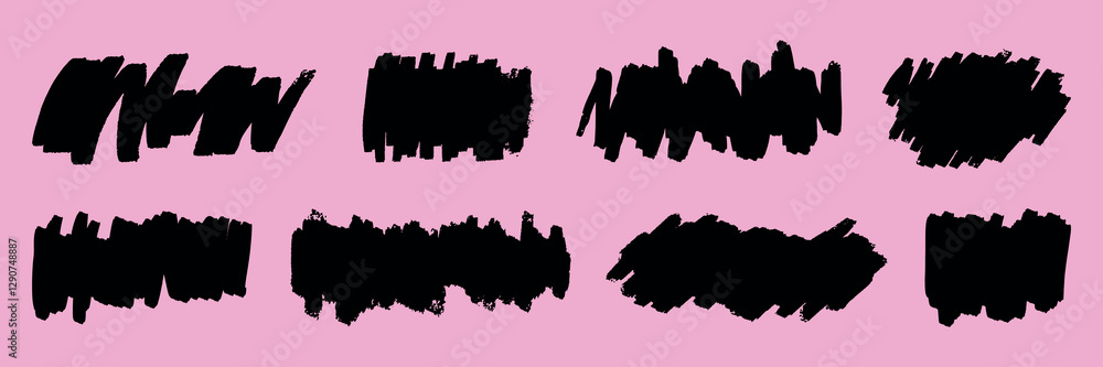 Wall mural : Abstract black brush strokes on a pink background - black strokes create dynamic patterns - brush stro