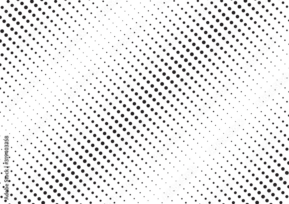 Wall mural abstract black diagonal halftone pattern on white background dotted texture.