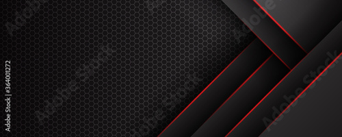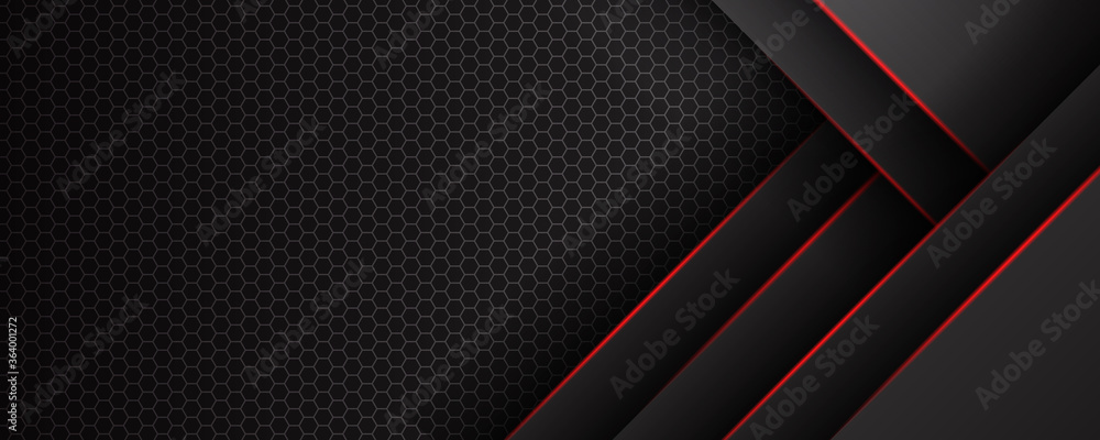 The watermark will not be included on Wall mural.: Abstract black grey metallic overlap red light hexagon mesh design modern luxury futuristic technolo