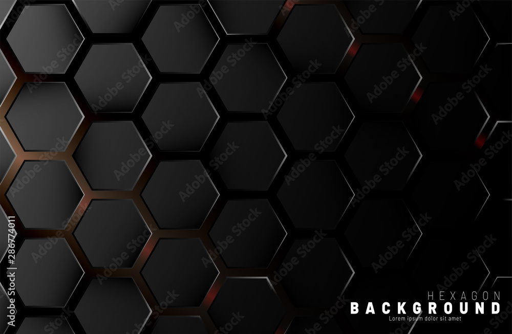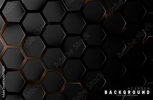 Wall mural abstract black hexagon pattern on a technology style of neon gradient background. honeycomb. vector