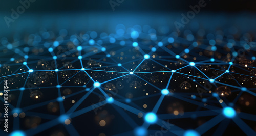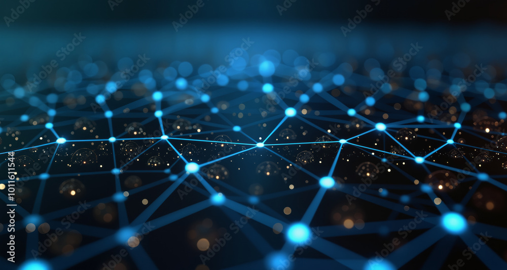 Wall mural abstract blue and black background with connected lines and dots, representing digital networking an - Wall murals Wall mural abstract blue and black background with connected lines and dots, representing digital networking an - Wall murals