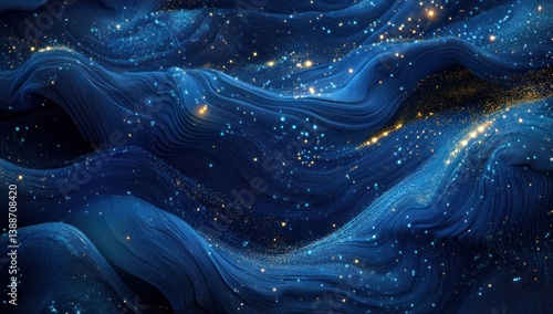The watermark will not be included on Wall mural.: Abstract blue and gold flowing patterns with glittering particles