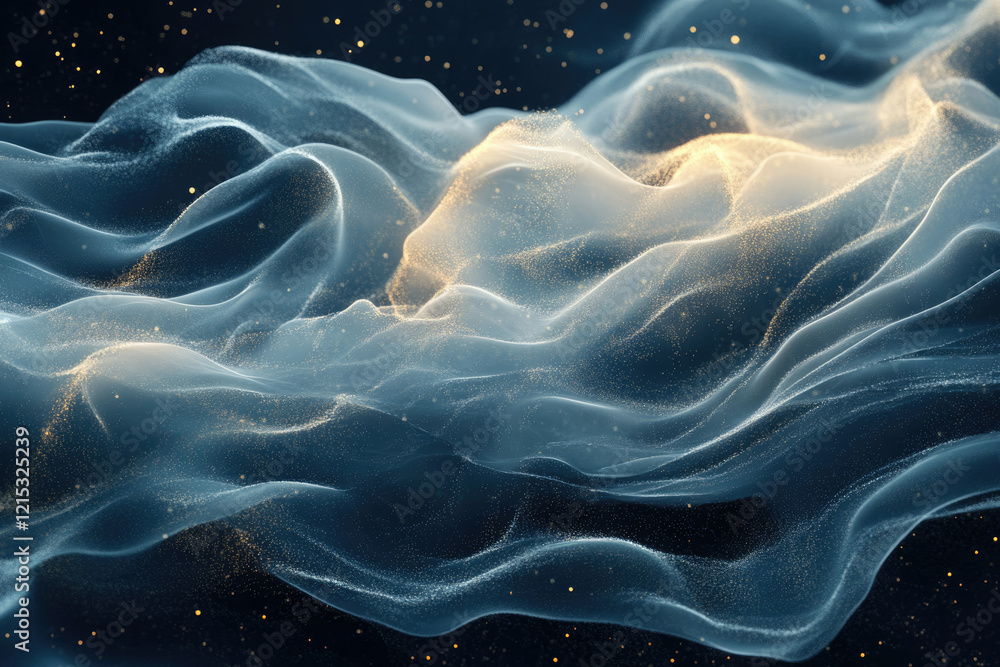 Wall mural : Abstract blue and gold particle waves flow dynamically, creating a luxurious and ethereal visual eff