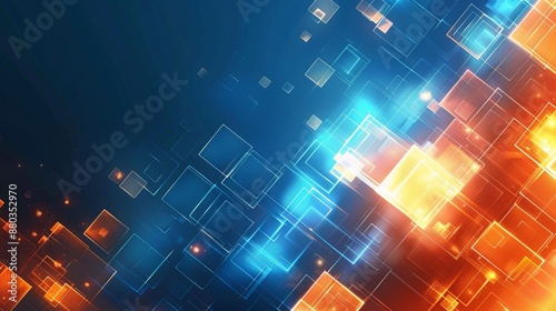 Wall mural abstract blue and orange technology background with geometric squares - vibrant digital design for t