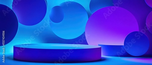 Abstract blue and purple geometric shapes background with platforms for product displayWall mural