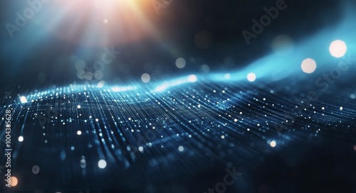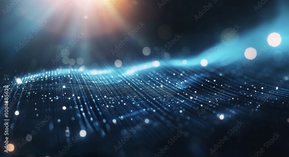 Wall mural : Abstract blue and teal particles floating in a dark setting with glowing effects