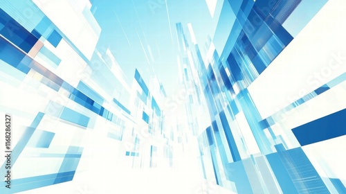 The watermark will not be included on Wall mural.: Abstract blue and white geometric shapes creating a sense of depth and motion -