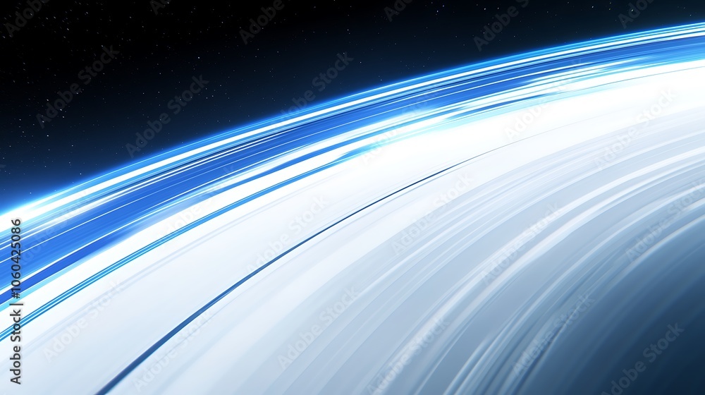 Wall mural : Abstract blue and white planet with light trails blank background with copy space for design project