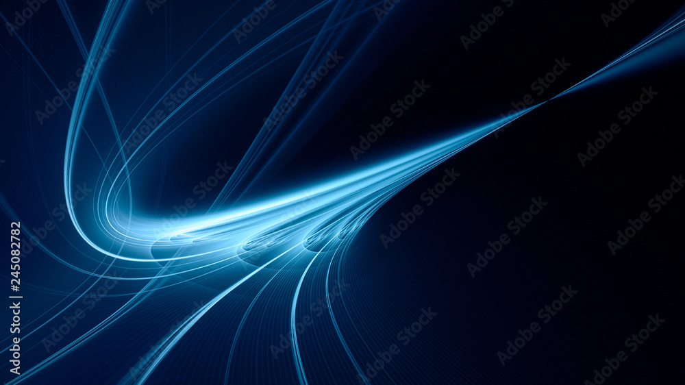 Wall mural : Abstract blue background element on black - fractal graphics - three-dimensional composition of glowin