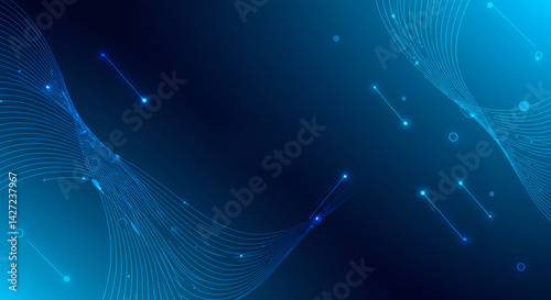 Wall mural : Abstract blue background featuring flowing lines and glowing dots creating a modern technology desig