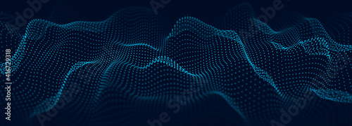 Wall mural abstract blue background of points. cyber particles. big data stream. vector illustration