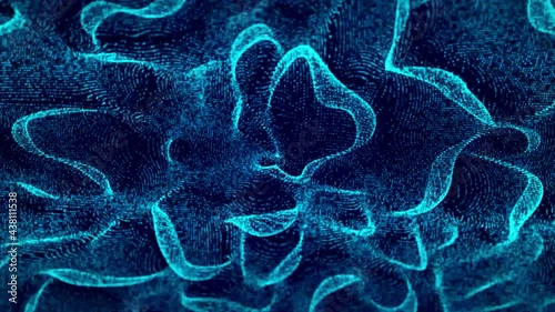 Wall mural abstract blue background of points. falling cyber particles. big data stream. seamless loop. 3d rend