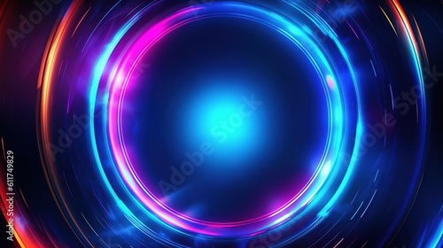 Wall mural : Abstract blue background with circles - radial neon background with light effects - generative ai