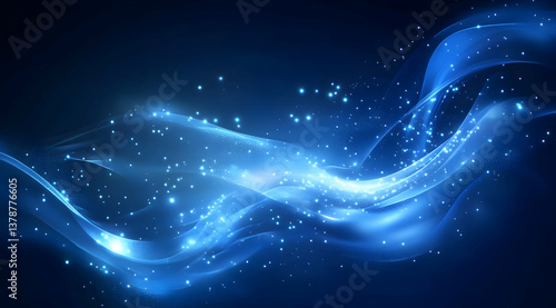 Wall mural abstract blue background with glowing lights and lines of data flowing through the space, a technolo